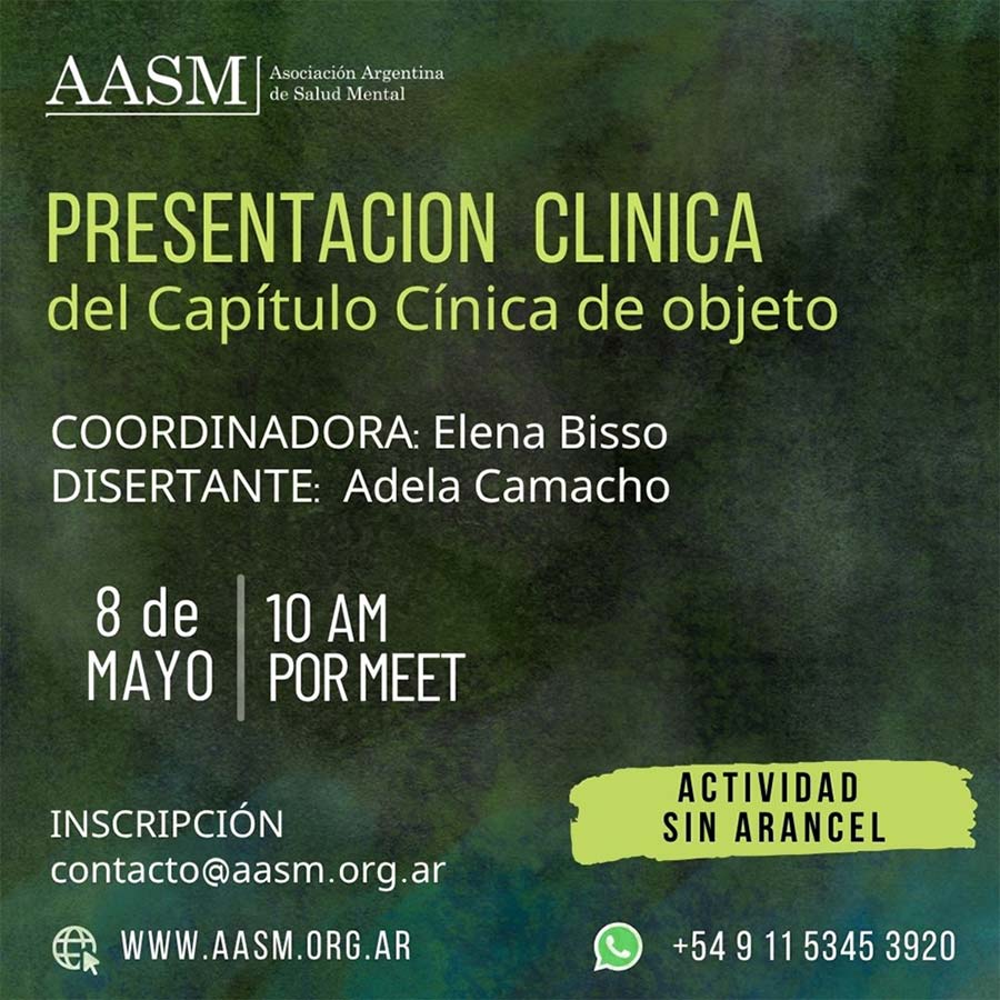 Graduada en la Facultad de Psicología de la UNLP. Integrante de un programa de intervención comunitaria dependiente del colegio de psicólogos distrito XI, y la facultad de derecho de la UNLP durante el ciclo 2017 2018. Participación en diversos espacios y grupos de estudios con orientación lacaniana. Realización de actividades de formación en el Instituto Ulloa y en el Círculo Psicoanalítico Freudiano de Buenos Aires. Realización del curso de la Clínica de Objeto en la AASM.
